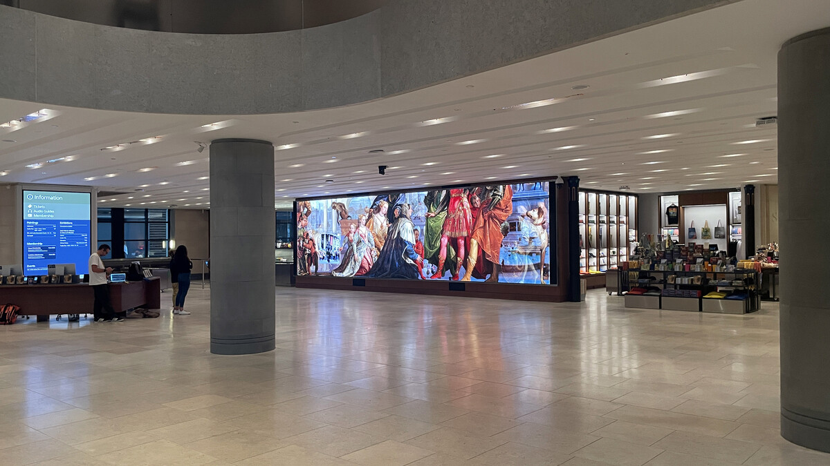 We worked closely with a curatorial team to examine this complex renaissance painting and our bespoke moving collage updated the painting whilst respecting its original themes.